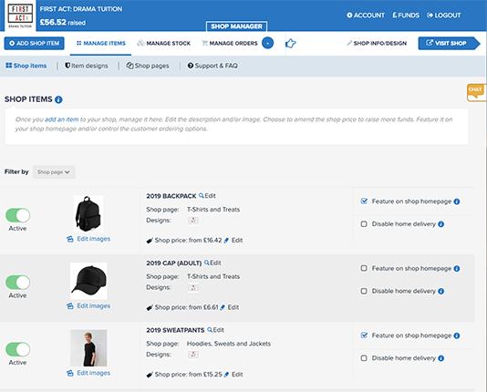 Using our shop platform is not only simple, but also helps fundraise! Create amazing items, design the look and feel of your shop and control prices to raise money. Your parents, members and supporters will love it too as they can shop for everything they need - all in one place.